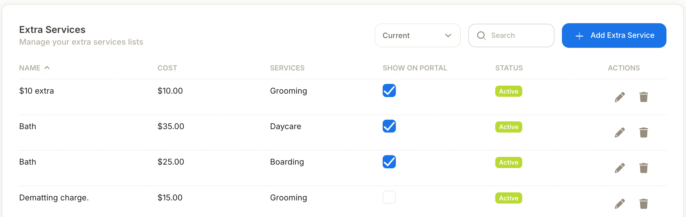 You can add extra services or products that you offer, eg. Baths or Treats. First you need to set up your extra services.